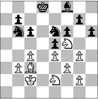 I was white in this game and after an interesting fight we reached this position. My opponent had just played the careless 26. ... Bc5-f8? overlooking the reply 27. Ba5! with a permanent pin on the knight since it is impossible to extricate the knight from the pin (another example of a permanent pin would be if say a black rook were on a8 and a black knight on b8 and a white rook came to the 8th rank; neither the rook nor the knight can ever move without heavy material loss). It turns out material loss is inevitable here; Black played the lacklustre 27. ... Bc5 and after 28. b4 he was forced to resign since after the further 28. ... Bf2 29. c5 he loses the knight (if 28. ... Bxb4 best is 29. Bxb6+). A better defence is provided by 27. ... Kc7 28. b4 (threatening to win a piece with 29. c5) c5! when the natural 29. b5 looking to maintain the pin is incorrect due to the resource 29. ... Nd4+! 30. Nexd4 cxd4 and Black threatens to untangle with g6, Bc5 and Kd6. So White must be content here with 31. Nxg7 Bxg7 32. c5 winning a pawn but with an endgame which is not easy to convert. Instead after 28. ... c5 best is 29. Nc3! (threatening Nd5+) 29. ... Kc6 (unpinning the knight and apparently defending everything) 30. b5+! Kc7 31. Nd5+ finally wins a piece. It would be a good exercise to work out all the possible lines after 27. Ba5 Kc7 and work out how White can win in each line, since a lot of different ideas come up in the analysis. The point however is that Black should not allow the pin to arise in the first place. Instead of 26. ... Bf8?, simply 26. ... Kd7 is correct; white has a slight advantage in the resulting ending but it is probably not enough to win.